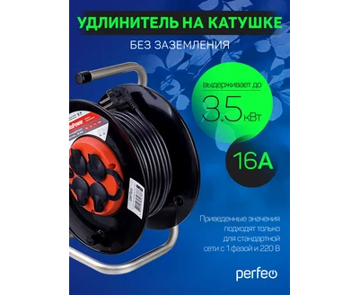 Удлинитель на катушке с заземлением Perfeo "RU POWER" 50м 4гн с т/з 16А ПВС 3х1,5 IP44 (РБК16), (Арт. PF_B4681)