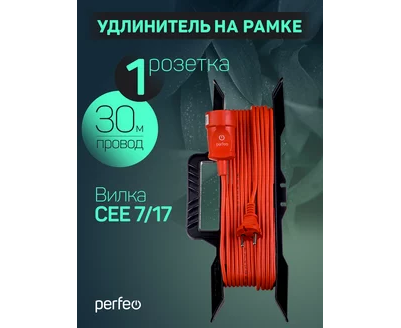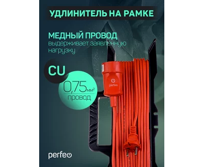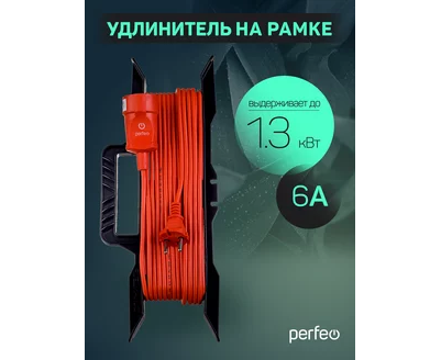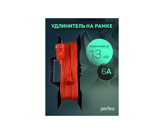 Удлинитель на рамке без заземления Perfeo "RU POWER" 30м 1гн 6А ПВС 2х0,75 (УХ6-101), оранжевый