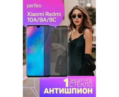 Perfeo защитное стекло "Антишпион" Xiaomi Redmi 10A черный Full Screen