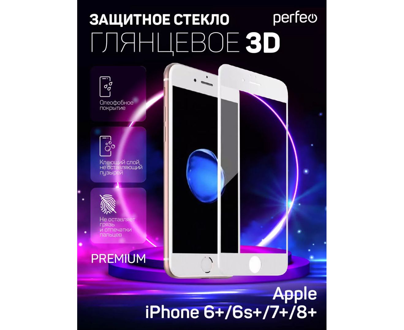 Защитное стекло Perfeo Apple iPhone 7+/8+ белый 3D PF_4860