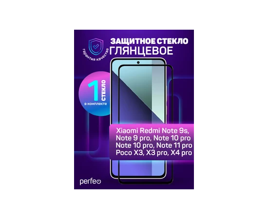 Защитное стекло Perfeo Xiaomi Redmi Note 9S/9 Pro/Mi 10T/Mi 10T Pro/POCO X3 черный Full Screen&Glue