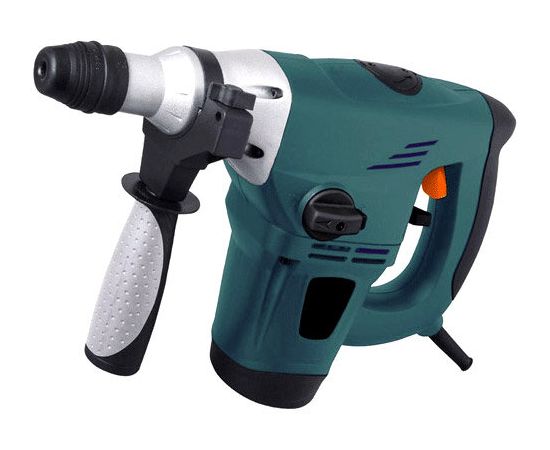 дополнительная рукоятка, ограничитель глубины сверления, 3 SDS+ сверла, 2 зубила, 13 мм патрон, смазка, пылезащитный колпачек, ключ, запасные щетки, кейс