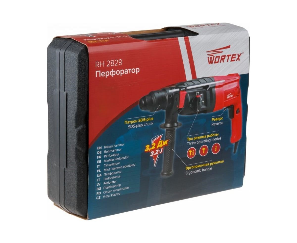 Перфоратор WORTEX RH 2829 (RH282901129) в чем. + (2 зубила, 3 сверла) (900 Вт, 3.2 Дж, 3 реж., патрон SDS-plus, быстросъемн., БЗП, вес 3.4 кг)