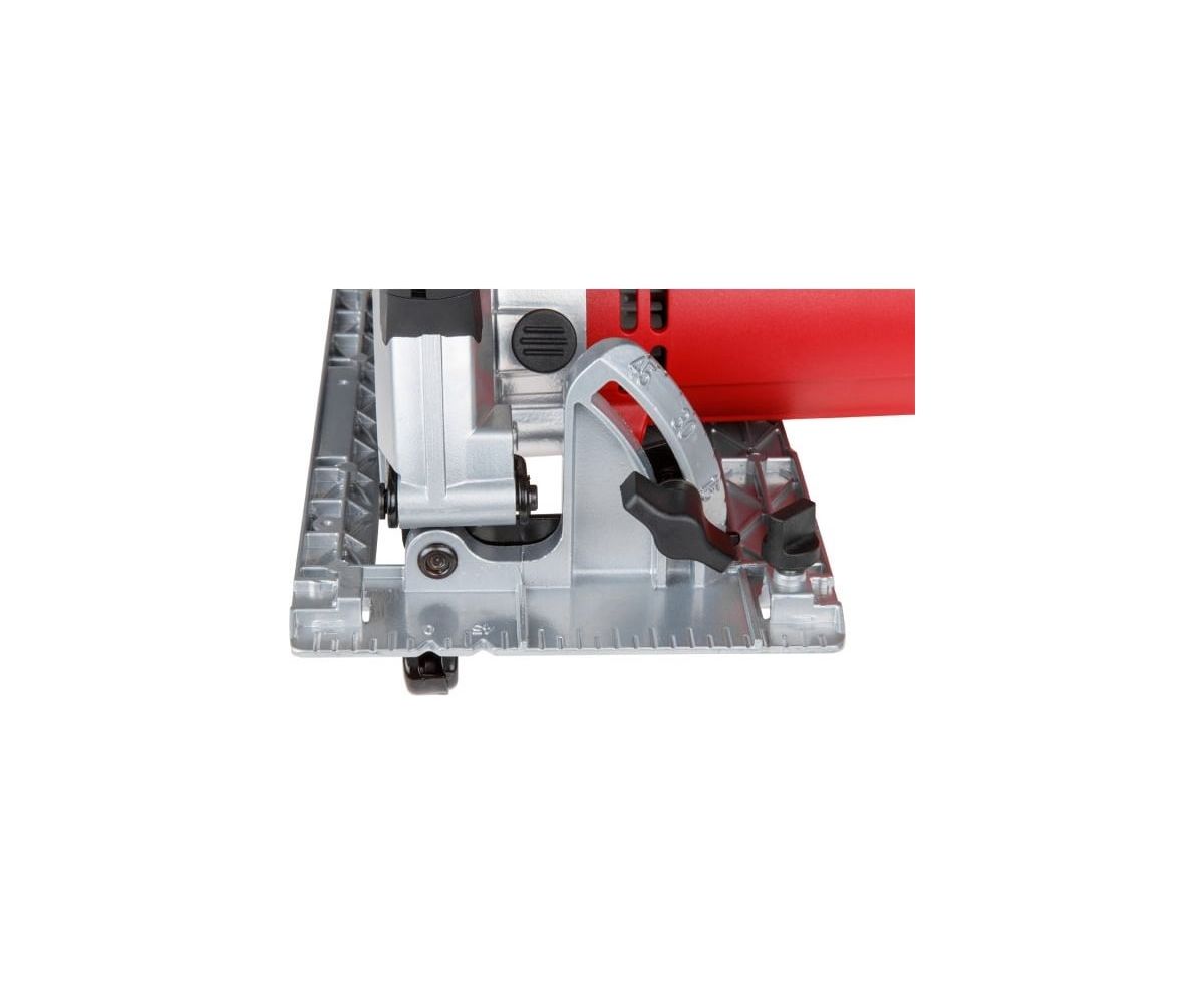 Можно регулировать глубину и угол наклона пропила. Модель оснащена широкой алюминиевой платформой и прорезиненной рукояткой. Количество зубьев: 24 шт.