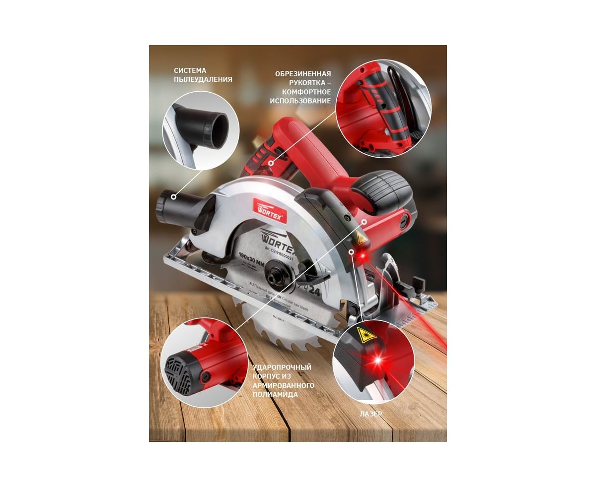 Циркулярная пила WORTEX CS 1916 L CS1916L00021 – это мощная, но при этом легкая и компактная пила подойдет для продольных и косых пропилов при максимальном уровне комфорта.