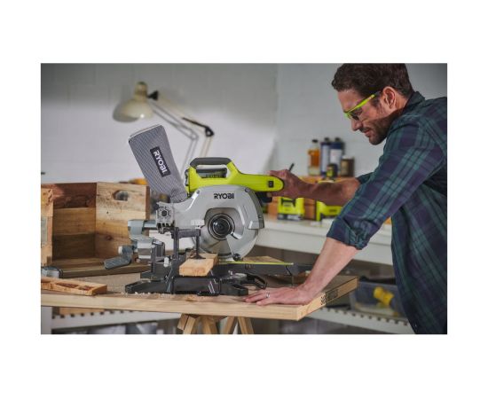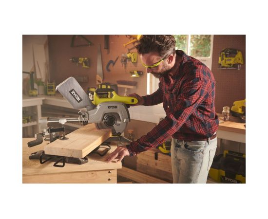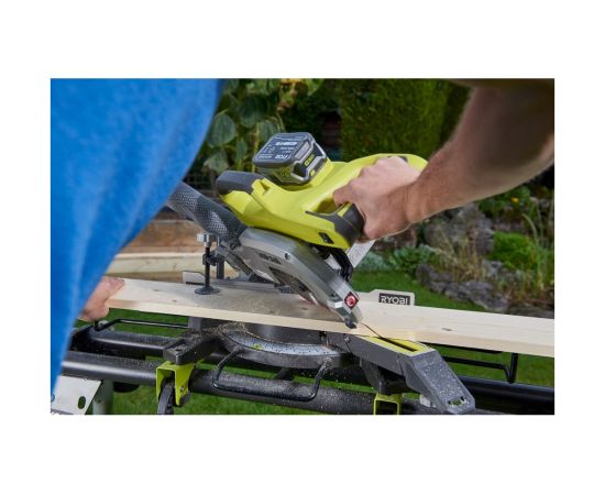 Аккумуляторная торцовочно-усовочная пила Ryobi ONE+ R18MS216-0 5133003597 подходит для распиливания массивной и клееной древесины. Инструмент выполняет как наклонные, так и косые распилы.