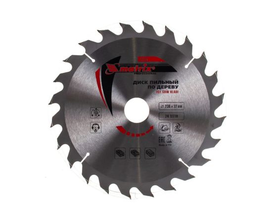 Пильный диск Matrix 73229 по дереву ф230х32мм, 24 зуба + кольцо 32/30