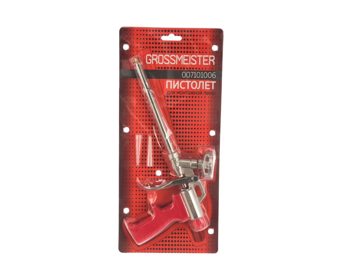 Пистолет для монтажной пены GROSSMEISTER 007101006 используется для нанесения монтажной пены при установке дверей, окон и других строительных конструкций.
