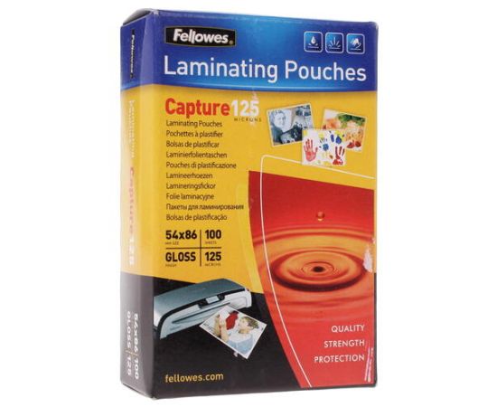 Пленки для ламинирования Fellowes®, 54x86 мм, глянцевая, 125 мкм, 100 шт, трехслойная структура: ПВХ + ПЭТ + ЭВА