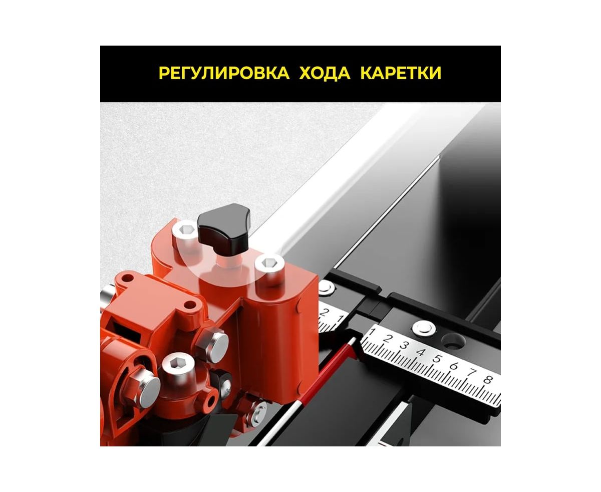 Ручной плиткорез предназначен для раскроя керамической плитки и керамогранита. Он позволяет работать с плиткой малого, среднего и крупного формата, размером до 1200 мм. Данный плиткорез имеет очень надёжную конструкцию, направляющая рельса сделана из твёрдо легированной стали, что обеспечивает устойчивость при движении и исключает боковой люфт. Лёгкий и плавный ход каретки обеспечивается за счёт подшипников высокого качества, они защищены пылезащитными вставками по бокам, что является залогом долгой эксплуатации. Изюминкой данной модели является лазерная направляющая зелёного цвета, указывающая направление разреза плитки. Точность реза у модели TC-1200G составляет 1 миллиметр. Данный плиткорез станет надёжным и незаменимым помощником при проведении работ, связанных с укладкой плитки самых разных размеров.