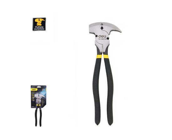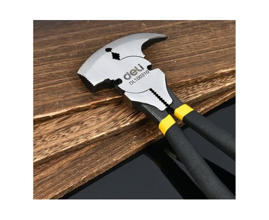 Плоскогубцы Deli DL100310 многофункциональные 5-в-1 250мм, (молоток, кусачки, гвоздодер, зажим, обжим) прорезиненная рукоять