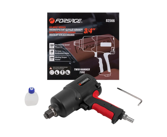 Пневмогайковерт Forsage Twin Hammer F-82566 (48141) ударный с реверсом и регулировкой усилия в облегченном корпусе 3/4"