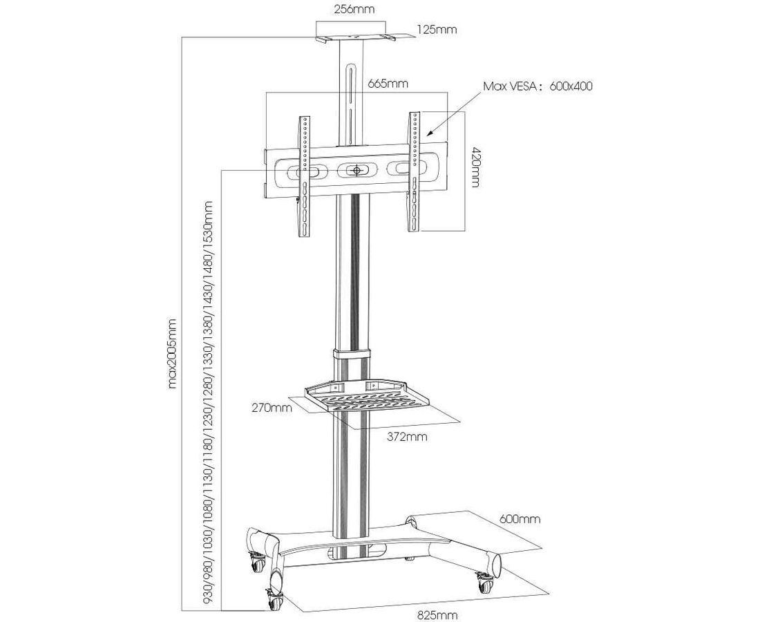 Поддержка крепления VESA 100×100, 200×100, 200×200, 200×300, 300×200, 400×200, 300×300, 400×300, 400×400, 600×400