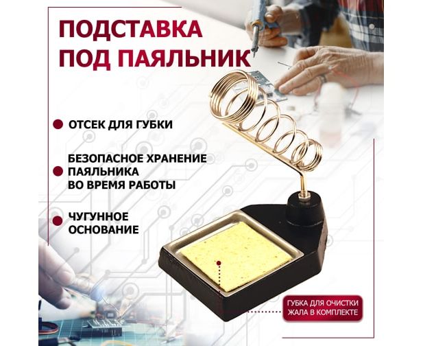 Подставка под паяльник REXANT (12-0308) чугун, ниша квадратная, губка (ZD-10С)