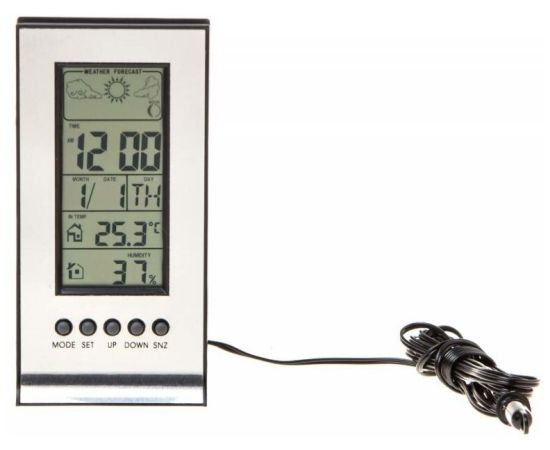 лунный календарь; сохранение температурных значений; длина провода: 1.8 м; отображение информации: цифры и символы; минимальный показатель температуры: -50 °C; максимальный показатель температуры: 70 °C