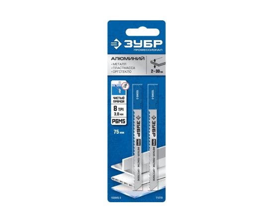 ЗУБР Профессионал Полотна по алюминию T127D для эл/лобзика 2шт 155945-3_z02 имеют увеличенную толщину рабочей части, что даёт повышенную устойчивость к излому и перегибу. Полотна применяются на электрических лобзиках при резке листового железа и цветных металлов.