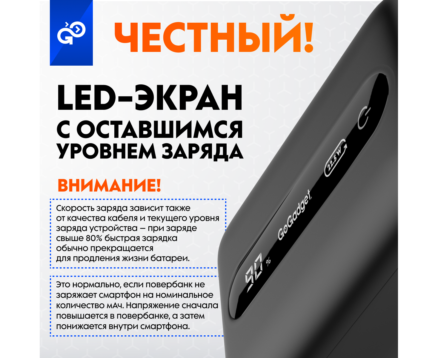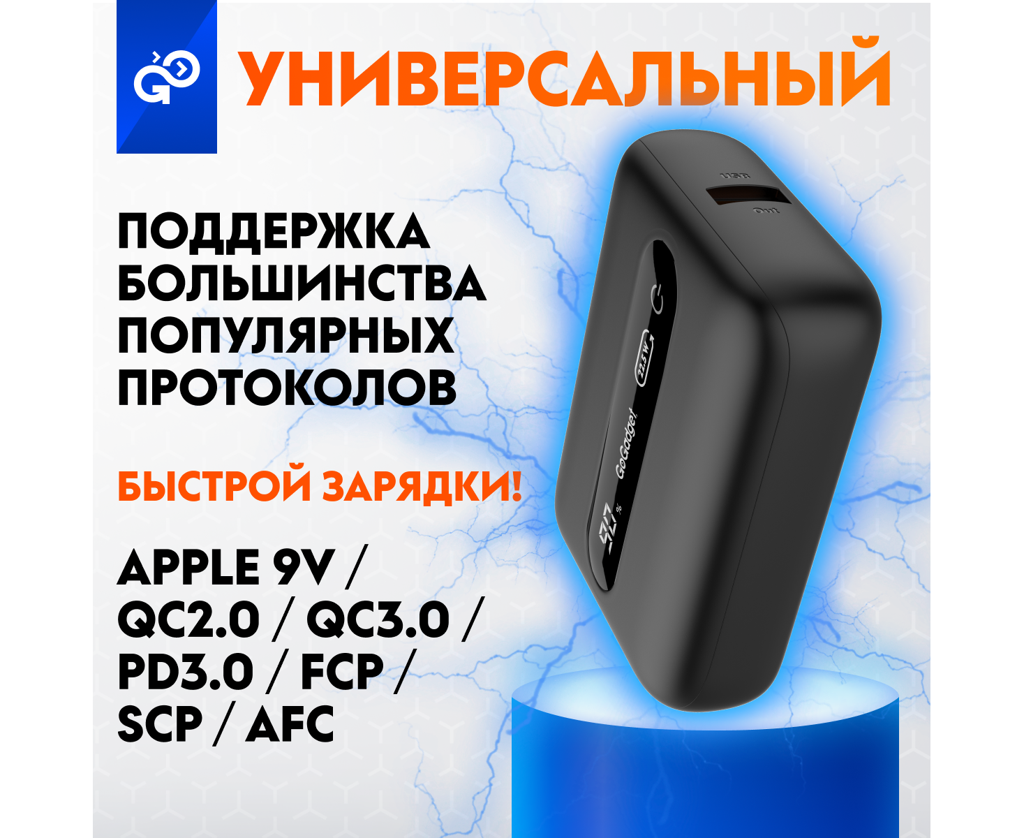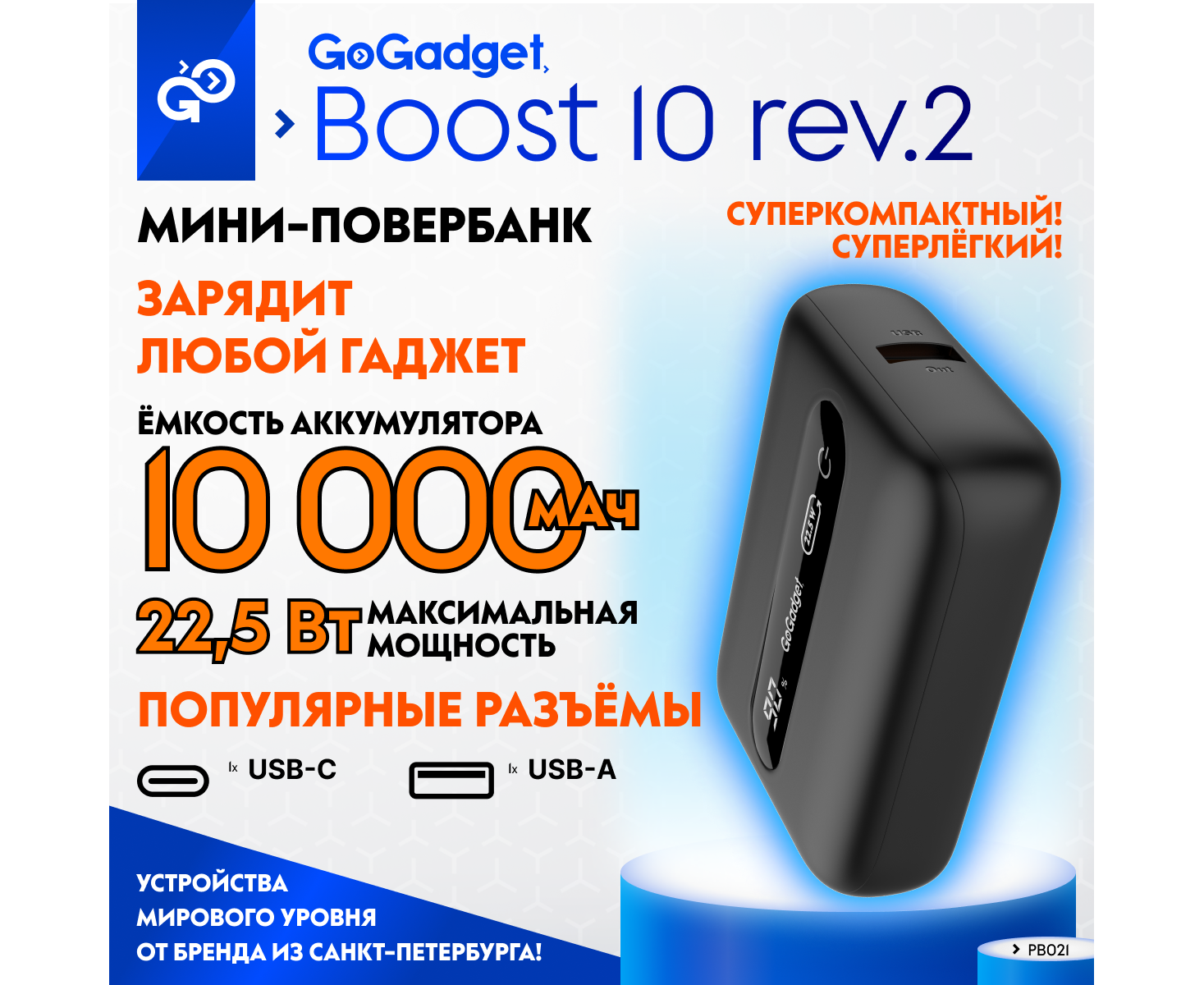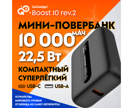 Портативный аккумулятор GoGadget Boost 10 22,5 Вт 10000 мАч 1x USB-C, 1x USB-A, ЧЕРНЫЙ