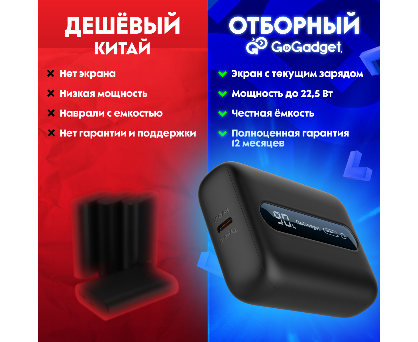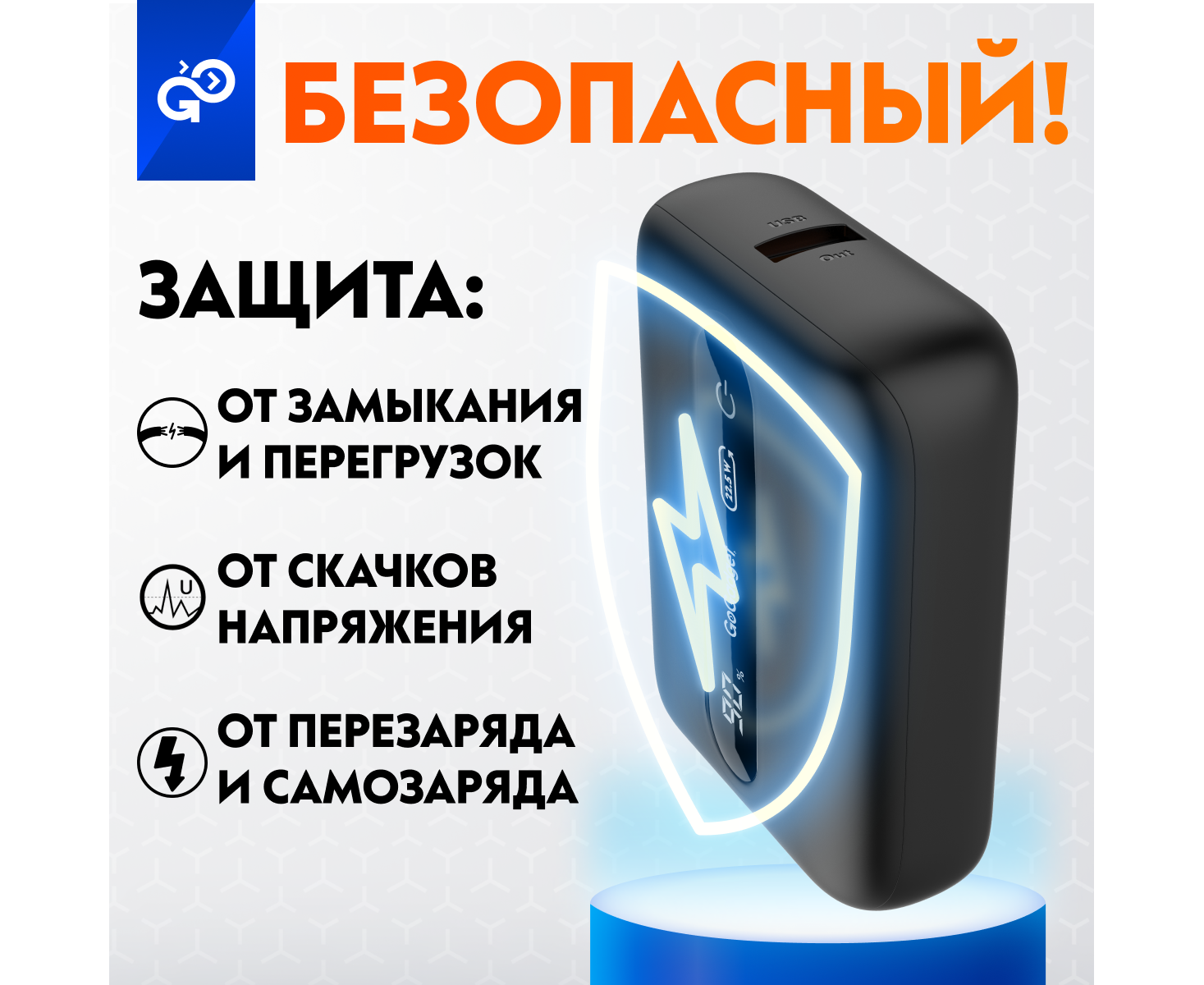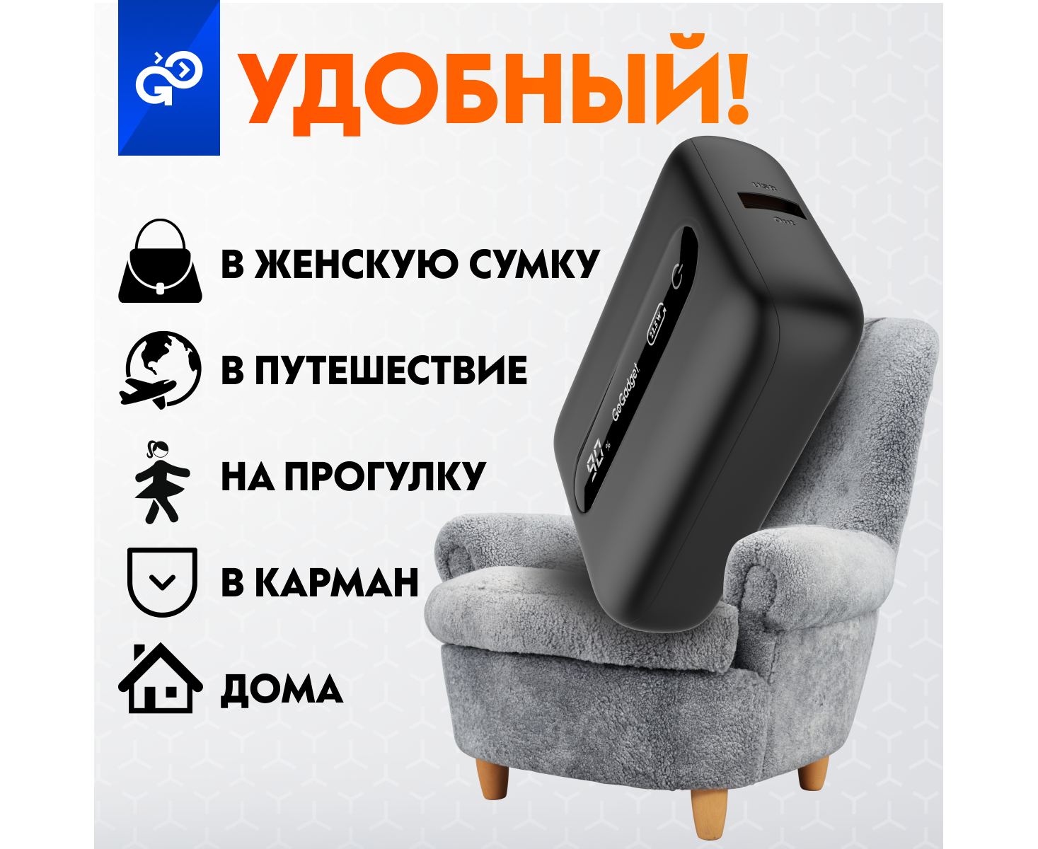 Портативный аккумулятор GoGadget Boost 10 22,5 Вт 10000 мАч 1x USB-C, 1x USB-A, ЧЕРНЫЙ