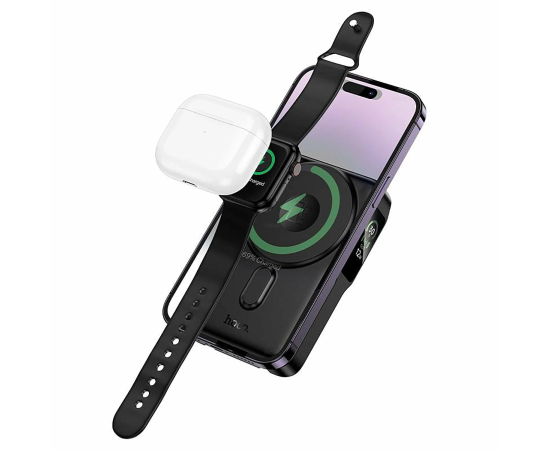 Power bank HOCO Q48 Core PD20W magnetic with cable+watch charger+holder 10000mAh Black