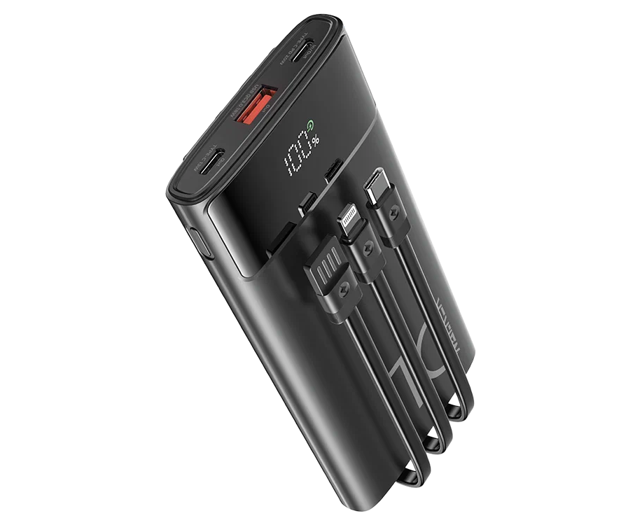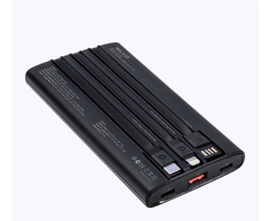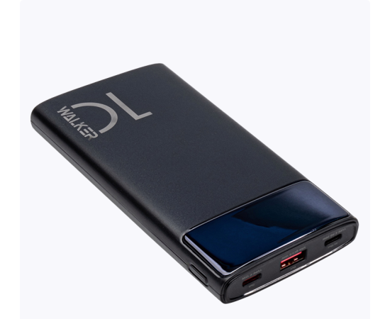Power Bank Walker WB-615, 10000mAh, Li-Pol, 3A, 22.5Вт, QC+PD, с 3 встроенными кабелями, черный