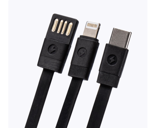 3 встроенных кабеля: USB тип А, USB тип С, Lightning