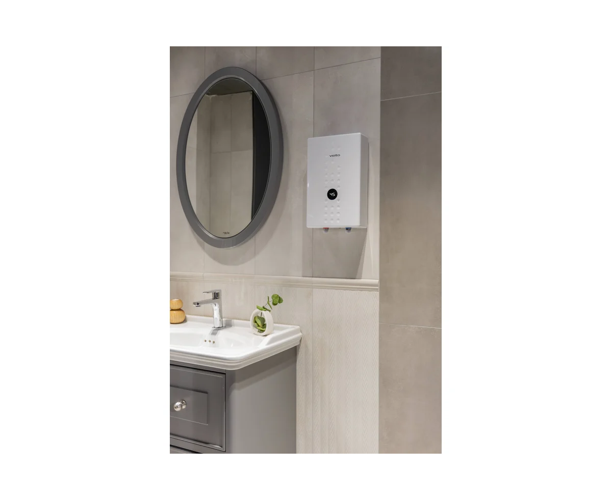 Veito FlowЕ9 - это компактный, энергоэффективный однофазный водонагреватель, предназначенный для моментального нагрева воды. Идеальное решение для установки в ванных комнатах, на кухнях, в дачных домах и квартирах. Устройство автоматически включается при открытии крана и мгновенно нагревает проходящую воду до заданной температуры, не требуя накопительного бака.