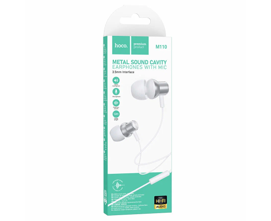 Проводные наушники HOCO M110 Encourage, Jack 3.5mm, 1.2 м, серебристый