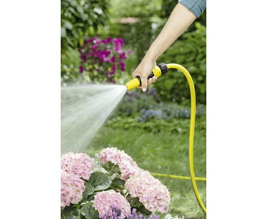 Распылитель для полива Karcher 2.645-264 используется для направленного полива растений и очистки садовой мебели и инвентаря от грязи. Есть возможность регулирования формы струи (от точечной до конической). Подключается к шлангу с помощью соединителя, который приобретается дополнительно.