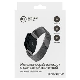 Ремешок металлический магнитный для cмарт часов Xiaomi Amazfit BIP/GTS 20 mm, серебри...