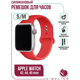 Ремешок силиконовый для Apple Watch 42мм, 44мм, 45мм (размер S/M) красный Эпл Вотч 42...