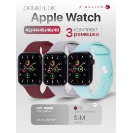 Комплект 3шт ремешок силиконовый для Apple Watch 42mm, 44mm, 45mm, 46mm, 49mm (размер...