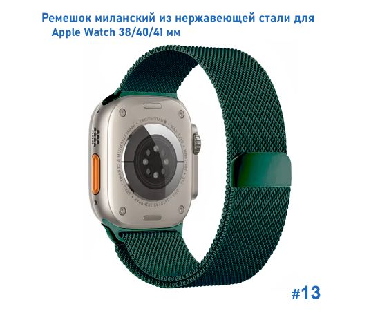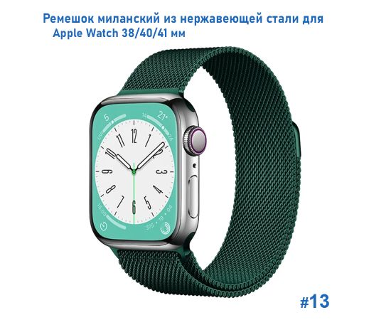 Ремешок миланcкий из нержавеющей стали Great Case Milanese Loop для Apple Watch 38/40/41 мм, 235мм, на магните, темно-зеленый (13)