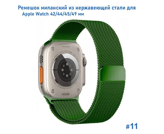 Ремешок миланcкий из нержавеющей стали Great Case Milanese Loop для Apple Watch 42/44/45/49 мм, 255мм, на магните, зеленый (11)