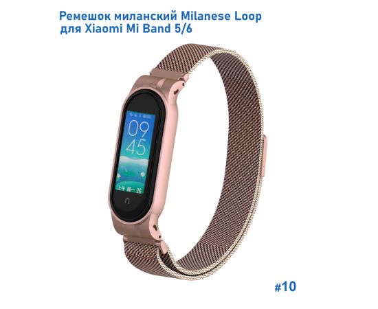 Ремешок миланcкий из нержавеющей стали Great Case Milanese Loop для Xiaomi Mi Band 5/6, 260мм, на магните, розовое золото (10)