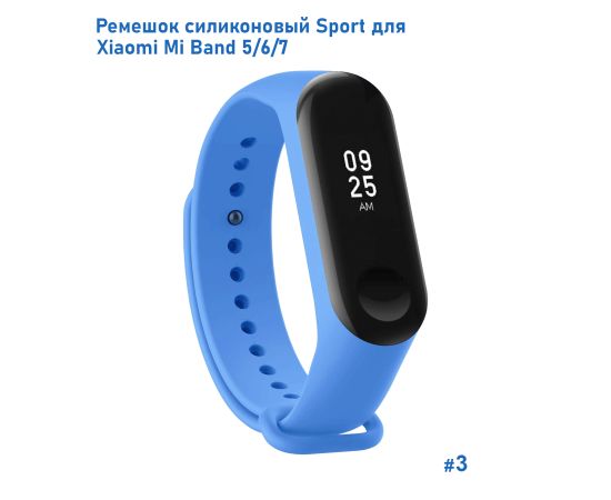 Ремешок силиконовый Great Case Sport для Xiaomi Mi Band 5/6/7, 250мм, на кнопке, лазурный (3)