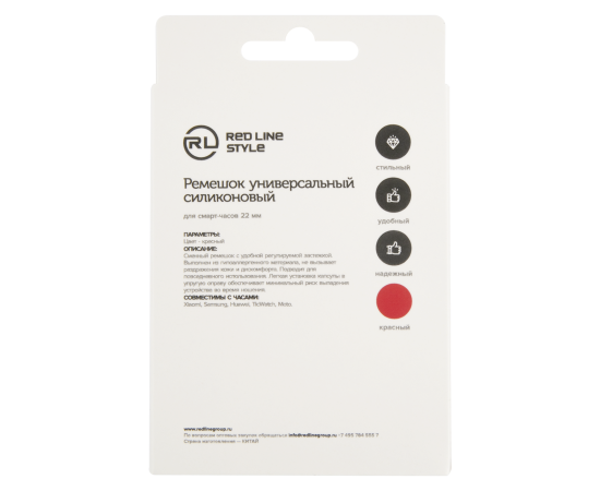 Ремешок для часов универсальный силиконовый, 22 mm, красный