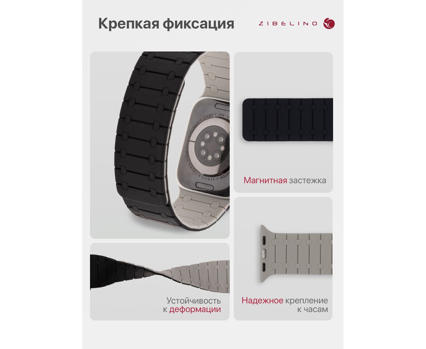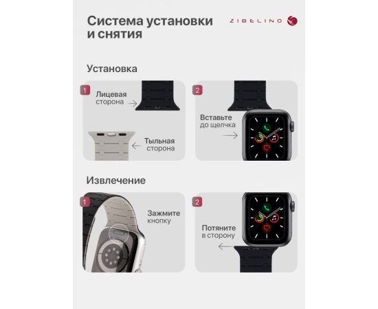 - Инновационное магнитное крепление мгновенно и надежно фиксирует ремешок на руке. Поднесите конец ремешка к основному полотну, и он зафиксируется с приятным щелчком. Это позволяет идеально подогнать ремень Эпл Вотч под любое запястье.
