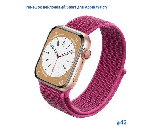 Ремешок нейлоновый Great Case Sport для Apple Watch 42/44/45/49 мм, 255мм, на липучке, пурпурный (42)