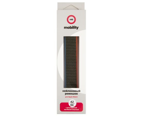 Ремешок нейлоновый MB для Apple watch – 42-44 mm (S3/S4/S5 SE/S6), оливковый с сине-красным краем