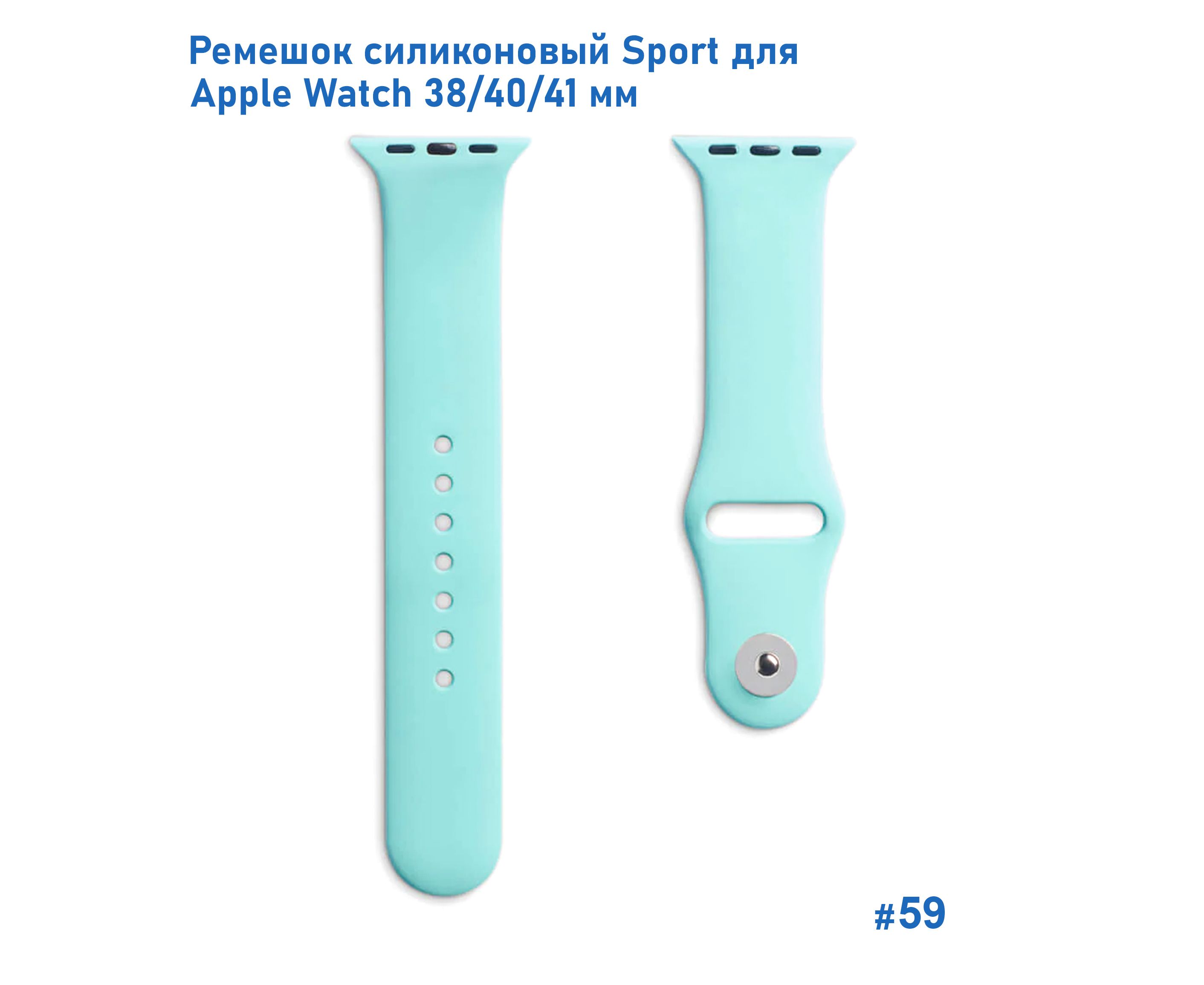 Ремешок силиконовый Great Case Sport для Apple Watch 38/40/41 мм, 225мм, на кнопке, бирюзовый (59)