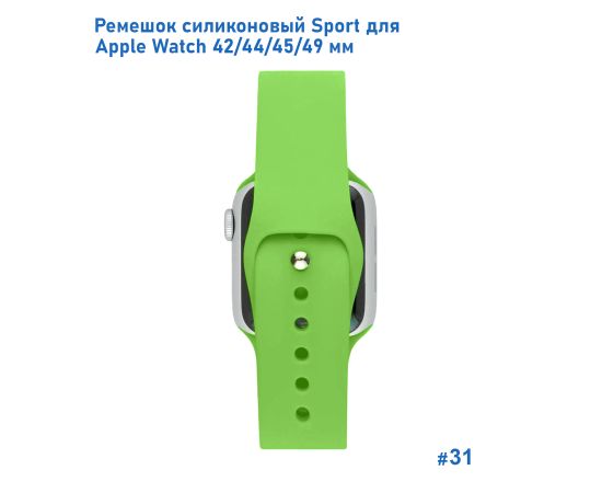 Ремешок силиконовый Great Case Sport для Apple Watch 42/44/45/49 мм, 235мм, на кнопке, ярко-зеленый (31)