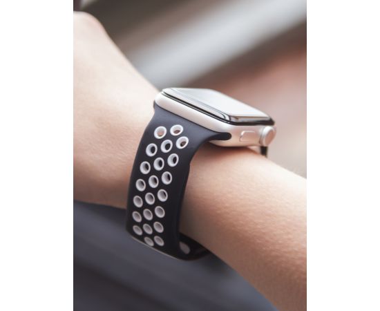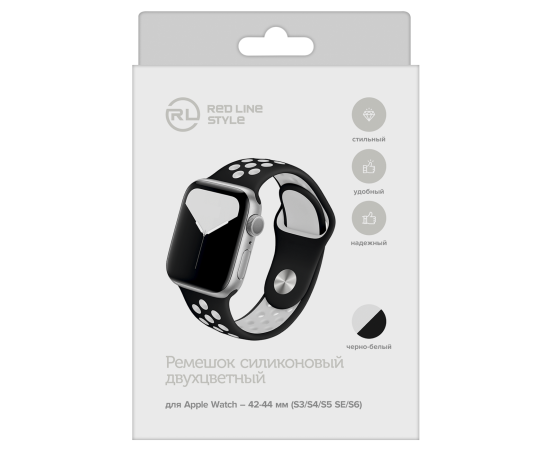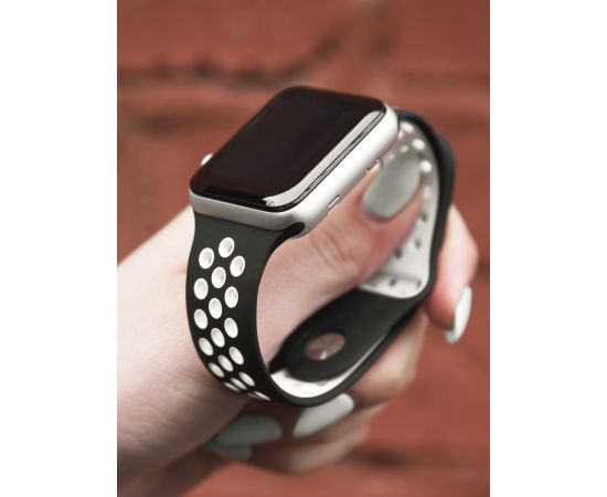 Ремешок силиконовый двухцветный для Apple watch – 42-44 mm (S3/S4/S5 SE/S6), черно-белый