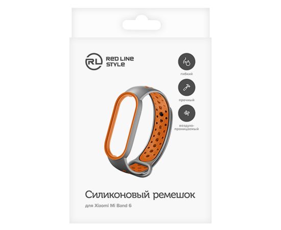 Ремешок силиконовый двухцветный для Xiaomi Mi Band 5/6, серо-оранжевый