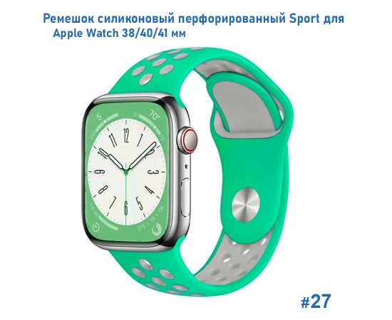 Ремешок силиконовый перфорированный Great Case Sport NK для Apple Watch 38/40/41 мм, 225мм, на кнопке, зеленый+серый (27)