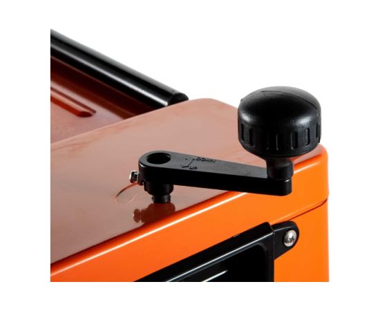 Безопасность работы обеспечивается многосекционной зубчатой защитой от обратного удара при рейсмусовании по всей рабочей ширине станка. Автоматическая подача заготовки со скоростью 8,5 метров в минуту увеличивает производительность труда, процесс обработки осуществляется значительно быстрее. Два ножа из быстрорежущей стали вращаются со скоростью 8000 об/мин, что гарантирует высокое качество обработки.