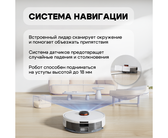 Навигация и картография: пылесос использует лазерную навигацию и технологию SLAM (одновременная локализация и построение карты) для создания карты помещения и определения оптимального маршрута уборки. Это позволяет ему избегать препятствий и эффективно убирать всю площадь комнаты.