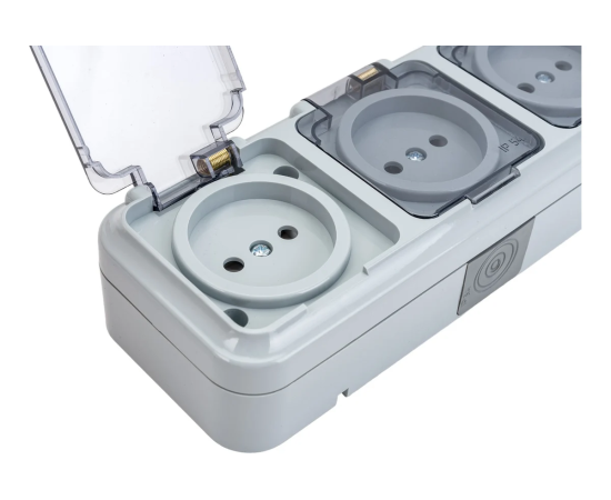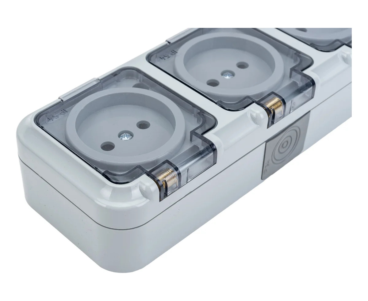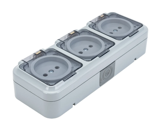 Розетка Bylectrica Пралеска Аква (РА16-0131(02)) 3-местная ОУ IP54, с прозрачной крышкой, серый