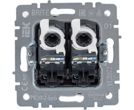 Розетка компьютерная IEK Brite BR-K20-1-K01 двойная кат.5e RJ45 рк10-2-брб белый