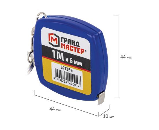 Рулетка-брелок ГРАНДМАСТЕР 671369 1м*6мм, пластиковый корпус