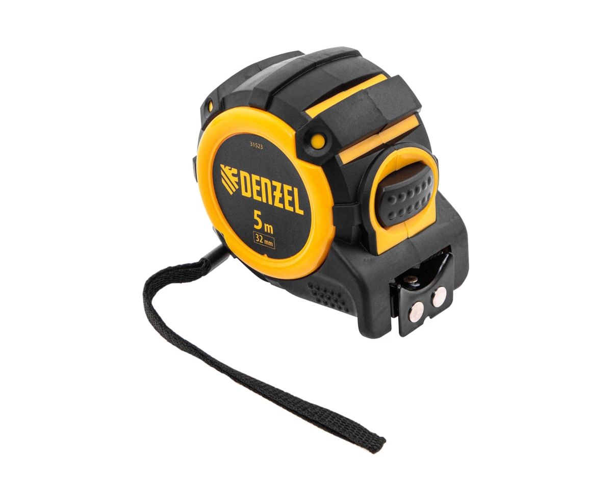 Рулетка Denzel 31523 автоматическая фиксация 5м х 32мм нейлоновое покрытие/магнитный зацеп/двухстор. разметка